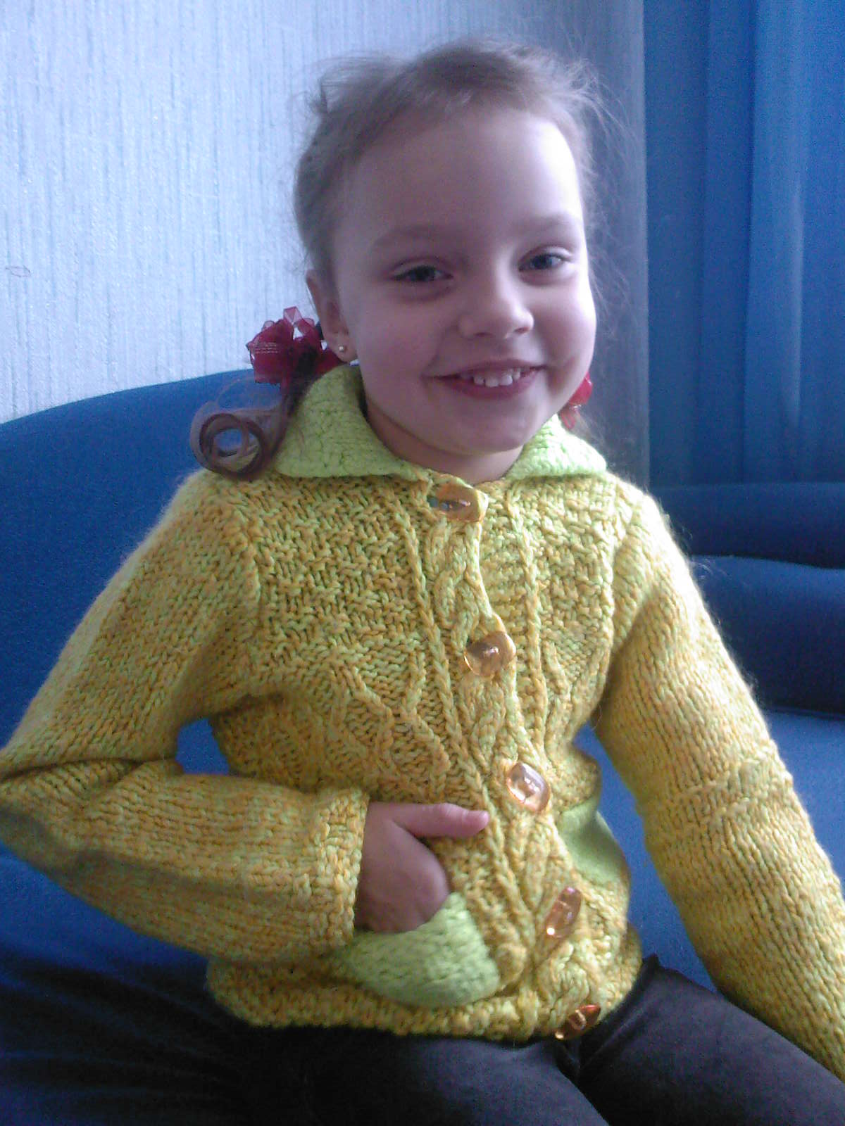 Очень тепло и уютно в кофточке связанной мамой.