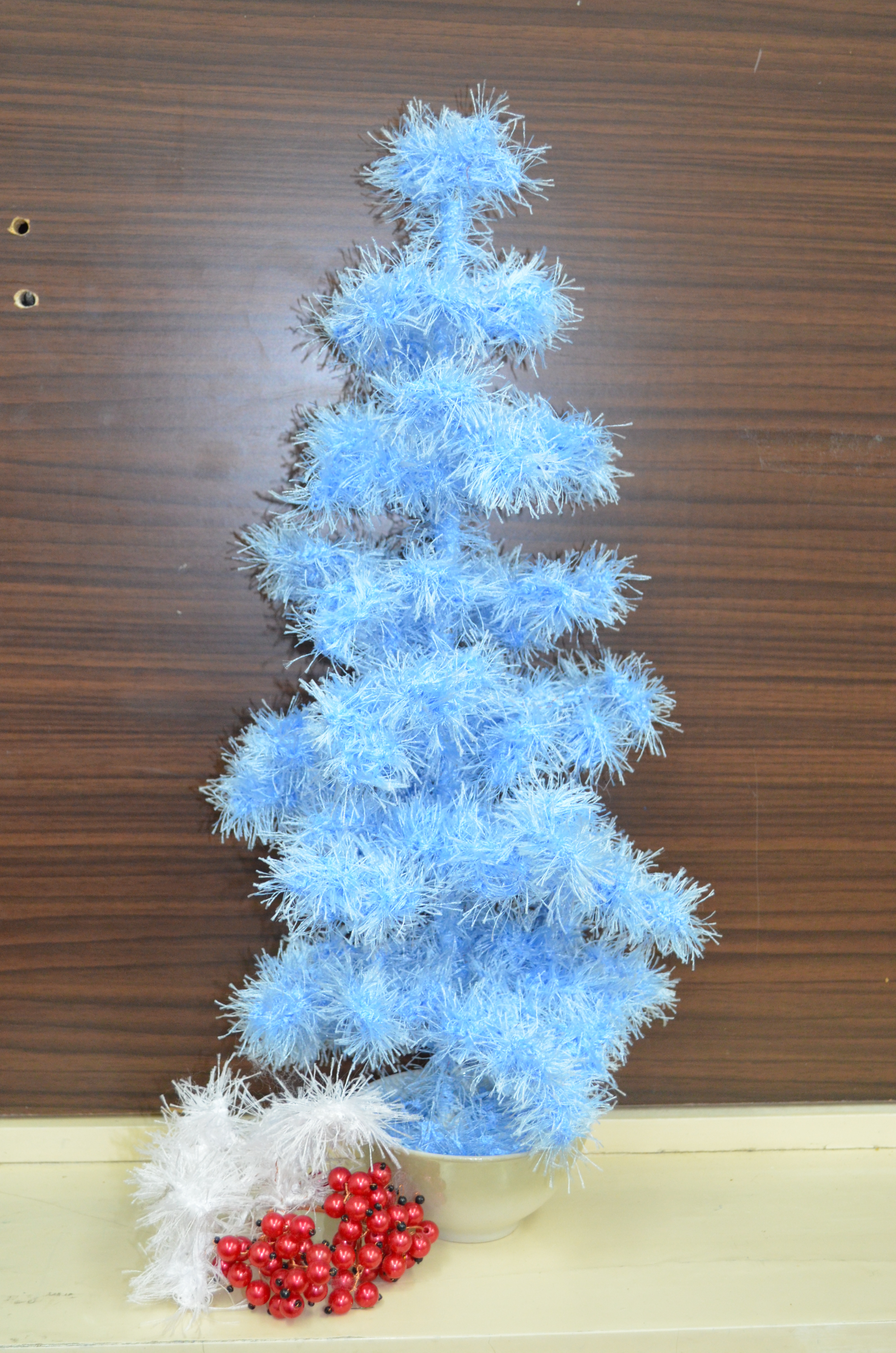 Для работы нужно:крючок, нитки"Травка", проволока тонкая, проволока толстая для ствола, алебастра , стакан где будет стоять елка. Берем отрезок ниток "Травка"и вяжем крючком. набираем шесть воздушных петель, замыкаем в круг, затем сыново набираем шесть воздушных петель и замыкаем в этот же круг и третий раз набираем шесть воздушных петель в этот же круг ( получается трех листик) на один ярус елочки надо 12 трех листиков. Затем вязанный трех листик наматывается на тонкую проволоку. На одной лапке елочки по три трех листика. Ярусов на елочке должно быть не меньше пяти. Елку собираем на толстую проволоку, ствол обматываем той же травкой. ставим в красивый стаканчик и заливаем алебастром с водой, елочка стоит в красивой подставке. С Новым годом друзья!
