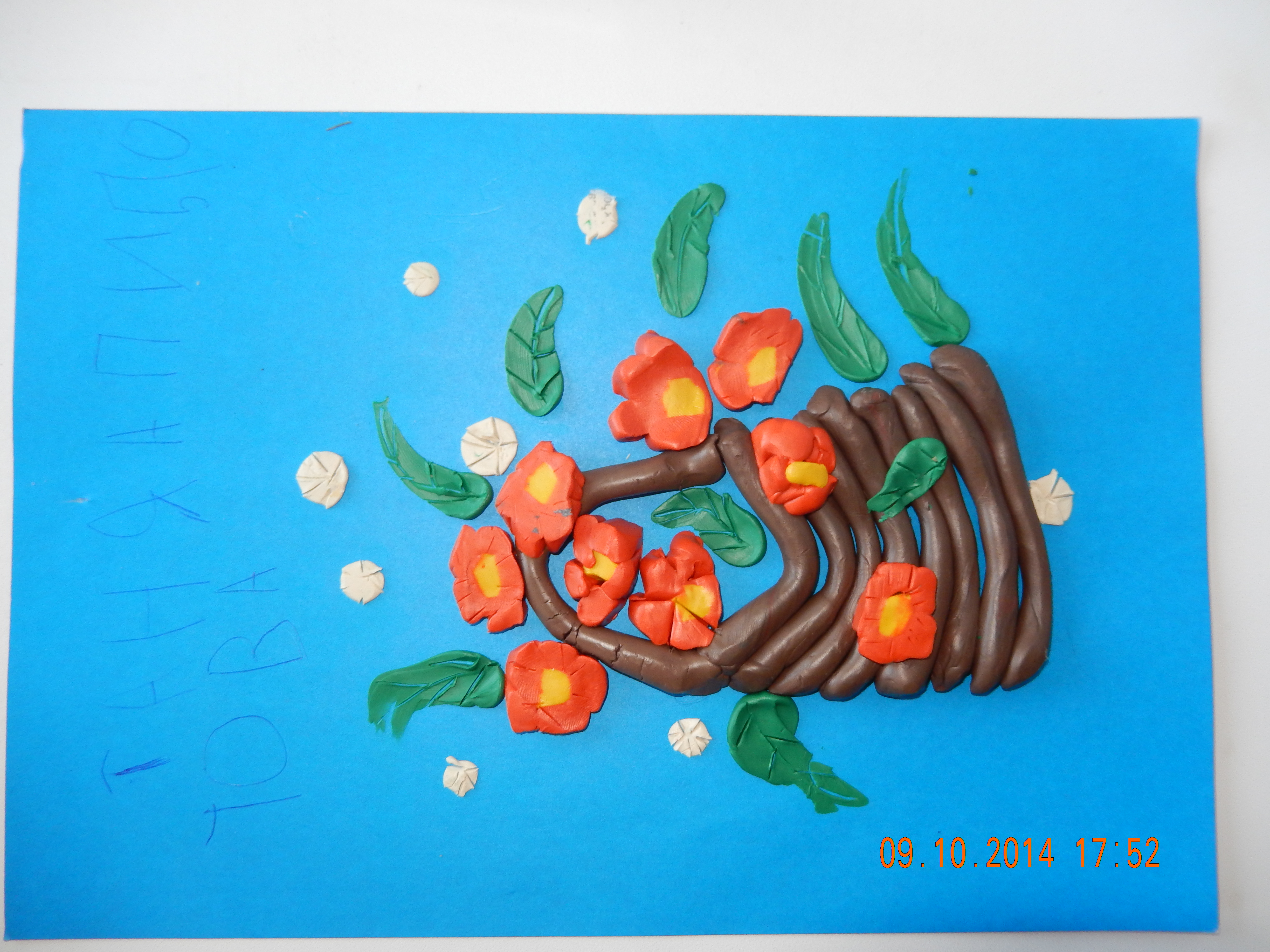 Предлагаю вам сделать со своими детками подобную работу. Для этого вам понадобятся пластилин, стека. доска для лепки и лист цветного картона.