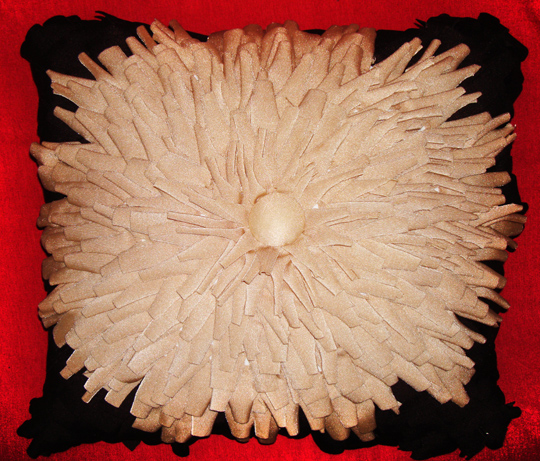 Спасибо за пиятные слова, на самом деле это эксперимент, я просто взяла синтетическую ткань, которая имеет свойство растягиваться и нашиа друг на другакругами разного диаметра,потом нарезала бахрому и вытянула, толучились вот такие трубочки