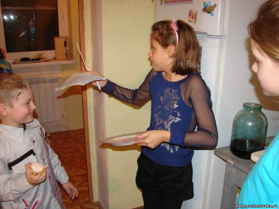 | Потом детки ушли играться, а мы наконец то сели за стол и перекусили) Когда пришла очередь подавать торт, Нюта полезла за ним в холодильник, а там пустая тарелка и записка. Надо было отгадать кроссворд и узнать ключевое слово. Торт был на окне.  В общем все прошло на ура!!!! Меню праздника: жареная курица, пюре, горячие бутерброды, сырные шарики, лодочки из яйца и ветчины, творожный десерт и наполеон! З.Ы. Жаль не сфоткали, что творилось в комнате после ухода гостей!!!!! Конфети, бумажки, игрушки...))) Но это такая ерунда!!! Главная безумно довольная дочунька!
