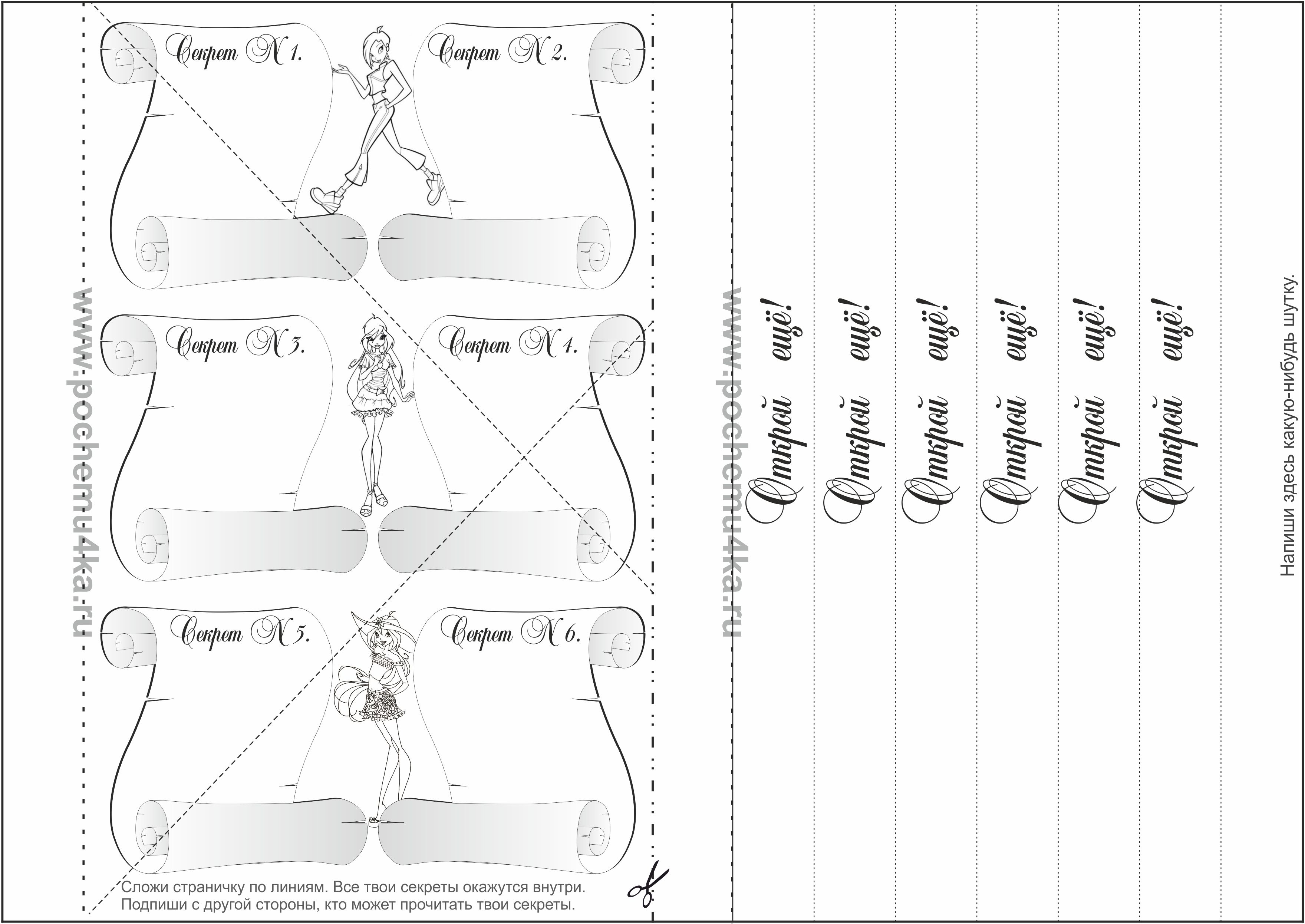 Одна страничка предназначена для секретиков, придумай и напиши их.