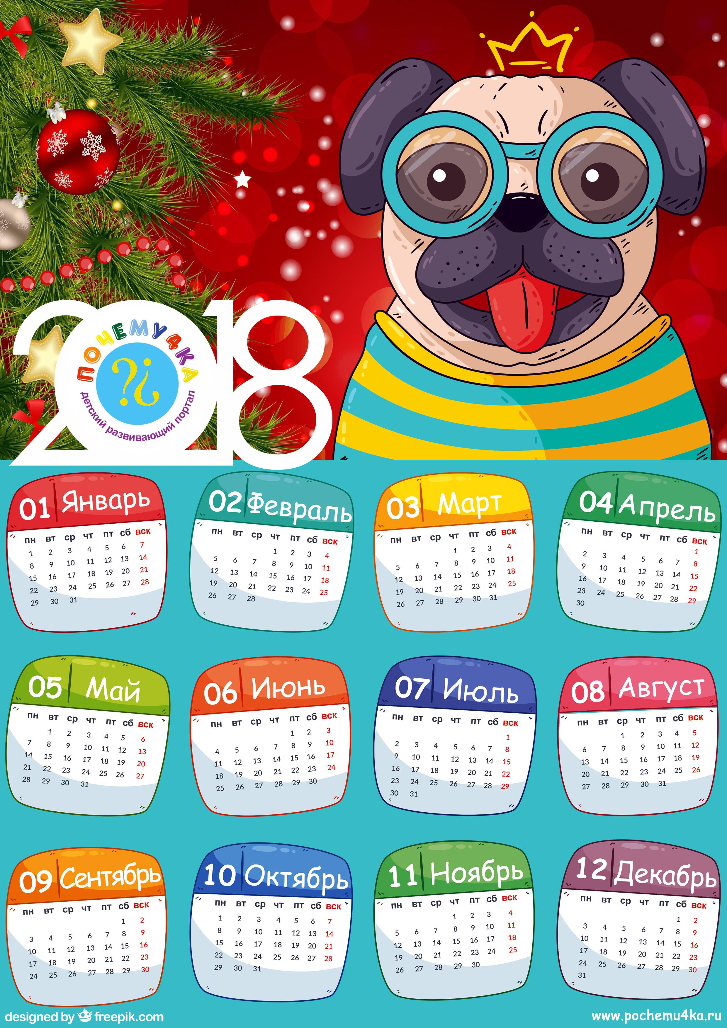 бесплатно, Скачать, Год собаки, календарь на 2018 год, календари