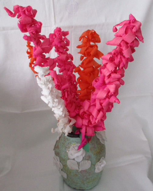 Букет выполнен из гофрированные бумаги
