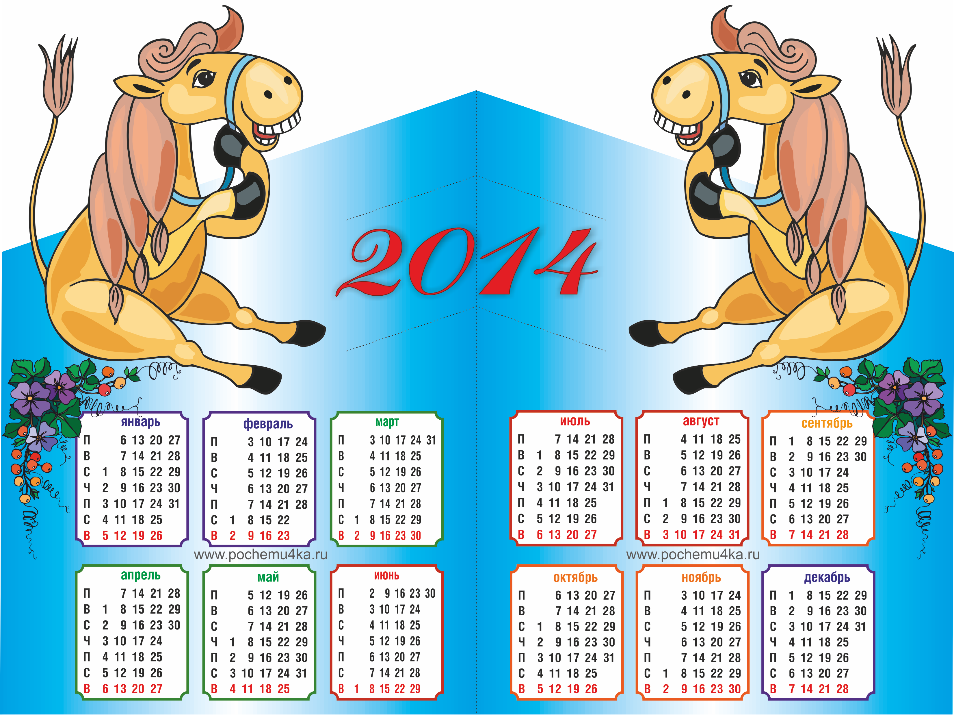 Данный календарь на 2014 год "Лошади" представлен для бесплатного скачивания и изготовления совместно с детьми.