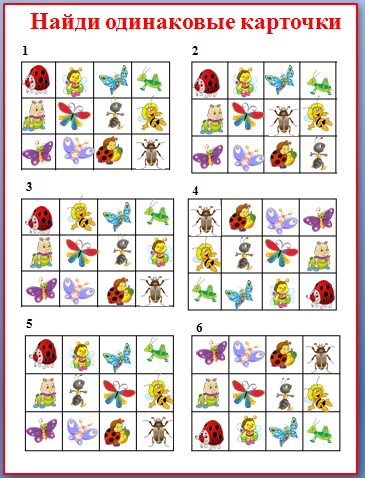 Задание на внимательность "Найди одинаковые карточки"