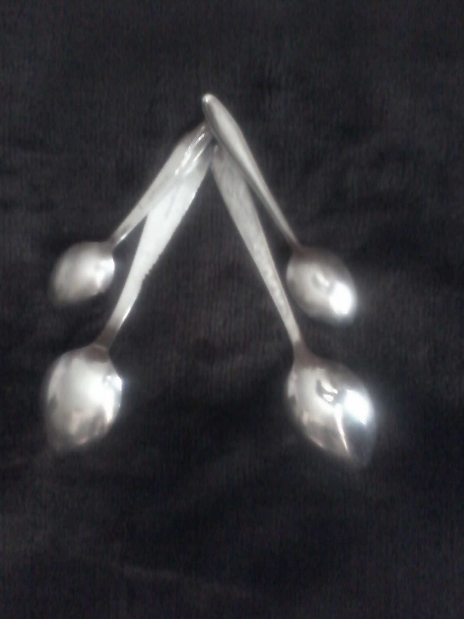 Взяли 2 столовые ложки и 2 чайные. Сложили из них букву Л.