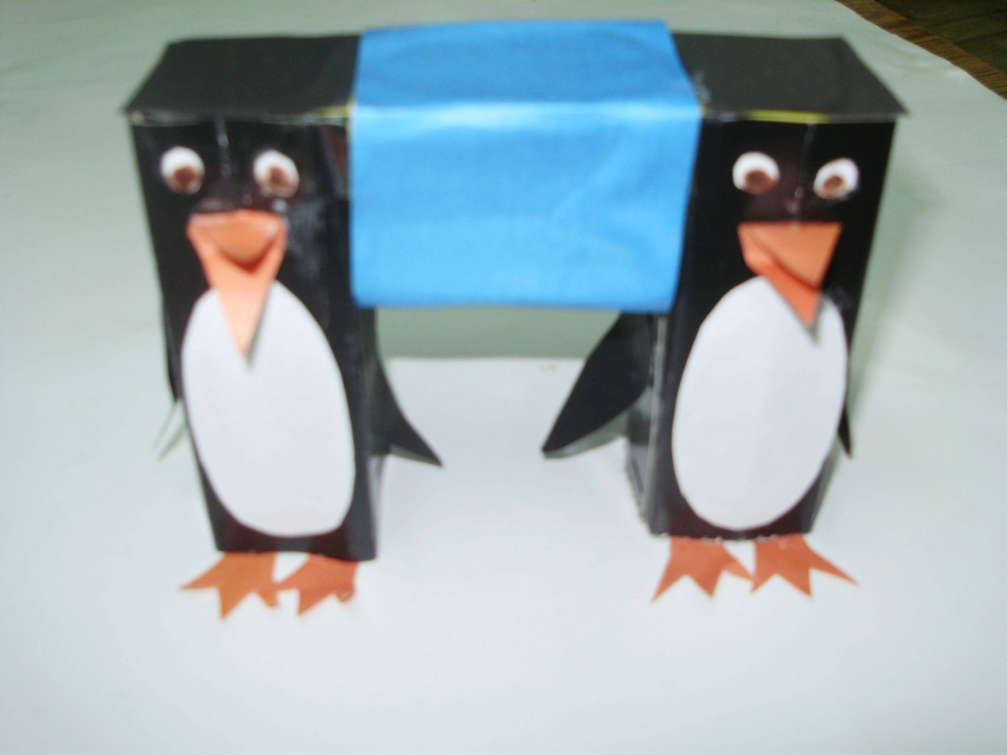 Я очень люблю мультфильм о пингвинах и решила сделать свою букву в виде пары пингвинов из картона и цветной бумаги