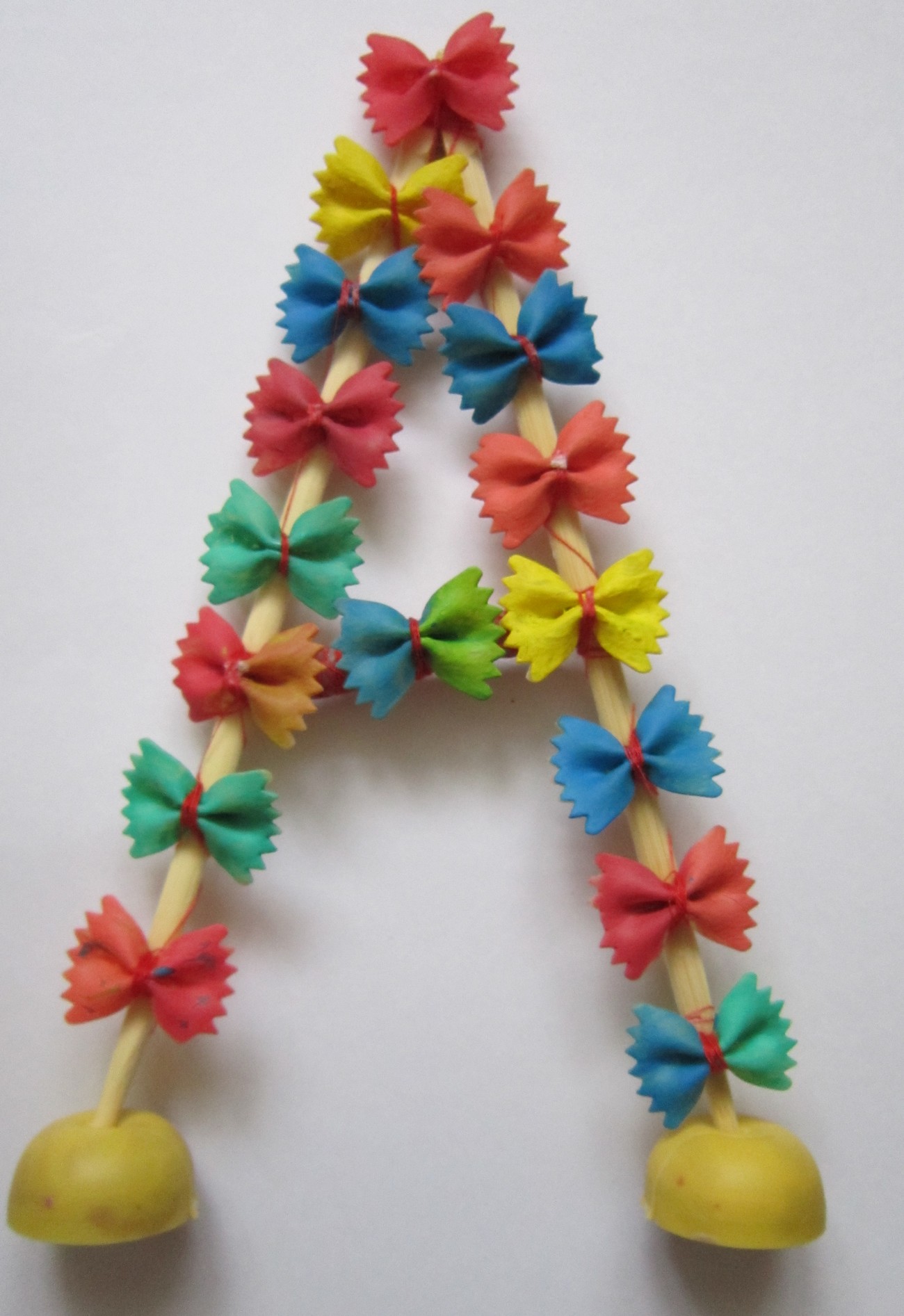 мы с мамой очень любим макароны, и решили из них сделать букву А.