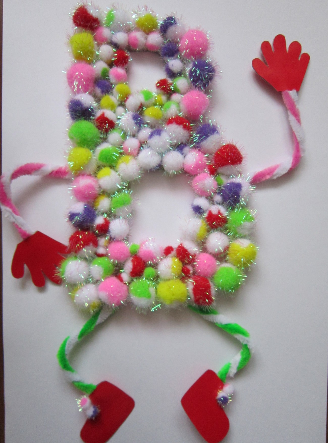 Мы с бабулей сделали мою буковку из пушистых пампонов.