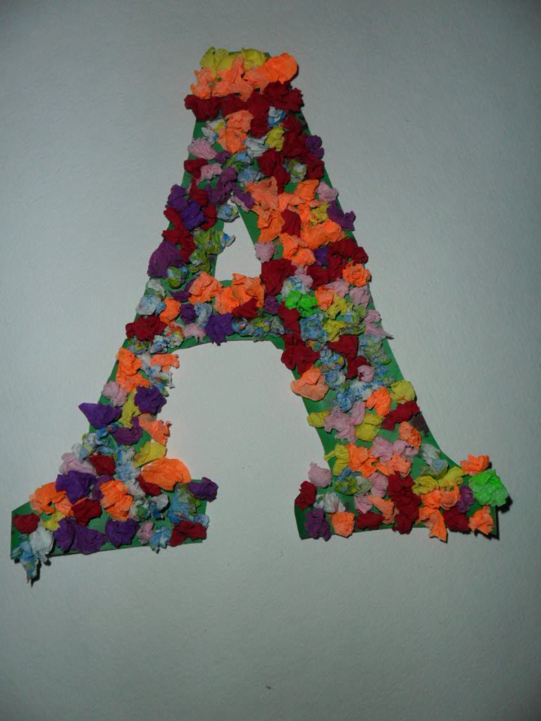 вырезаем букву А и наклеиваем на нее мятые салфетки...:)