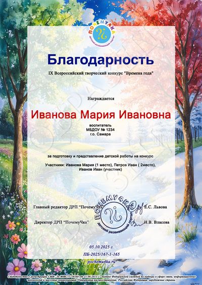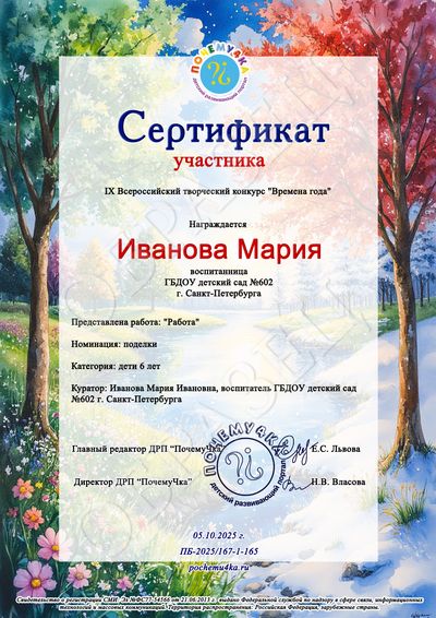 * Благодарственное письмо педагогу, одновременно заявившему 20 и более детских работ, оформляется бесплатно в электронном виде! Участвуйте группами!
