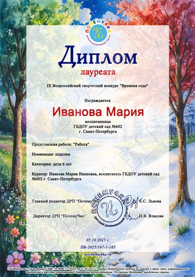 Рассылка дипломов: через 3 рабочих дня после получения работы на конкурс (и оплаты за её участие)!