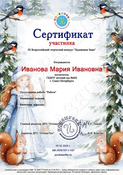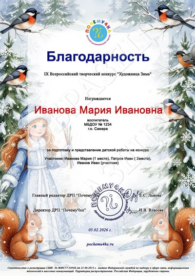 * Благодарственное письмо педагогу, одновременно заявившему 20 и более детских работ, оформляется бесплатно в электронном виде! Участвуйте группами!