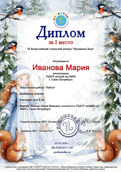 Рассылка дипломов: через 3 рабочих дня после получения работы на конкурс (и оплаты за её участие)!
