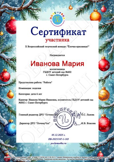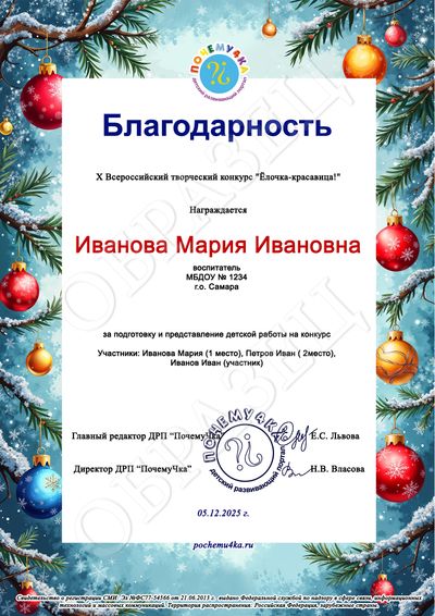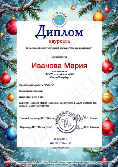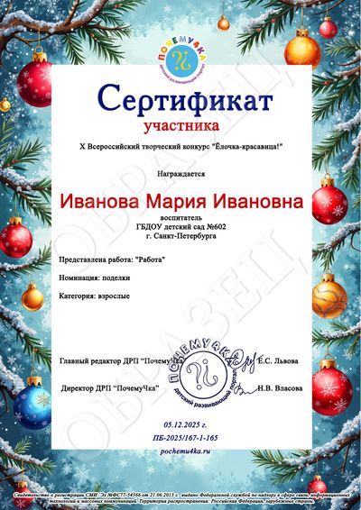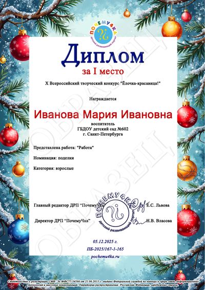 В дипломе победителя и сертификате участника конкурса пишутся следующие данные: