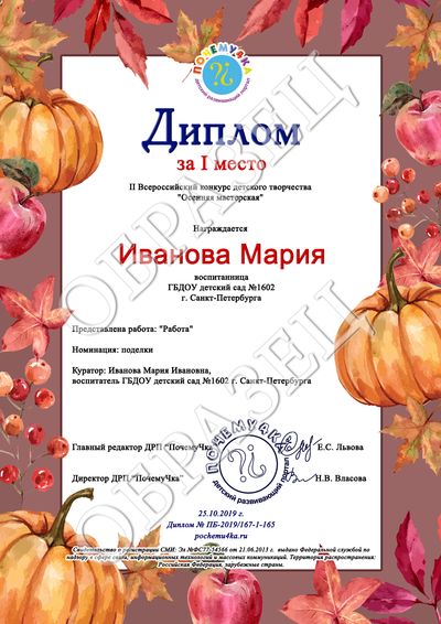 В дипломе победителя и сертификате участника конкурса пишутся следующие данные: