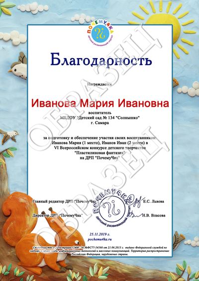 4. По желанию (если укажете в заявке) пишется статус и ОУ ребенка, например, "воспитанник МБДОУ №12 г.Москва", "ученик 4"А" класса МБОУ СОШ №15 г.Саратов" и т.д.;