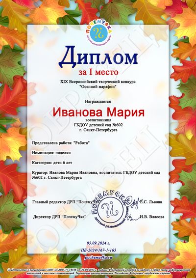 4. В течение 3-х рабочих дней вам будет отправлен диплом на электронную почту указанную в заявке. Если вы не получили диплом, обязательно с нами свяжитесь, написав письмо на электронную почту оргкомитета orgkomitet111@gmail.com, так как это означает, что заявку Вашу мы не получили.