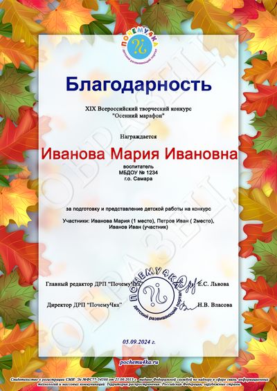 А мы для всех ребят и взрослых проводим – конкурс "Осенний марафон". Мы предлагаем поучаствовать не только индивидуально, но и целыми отрядами, классами, группами детского сада.