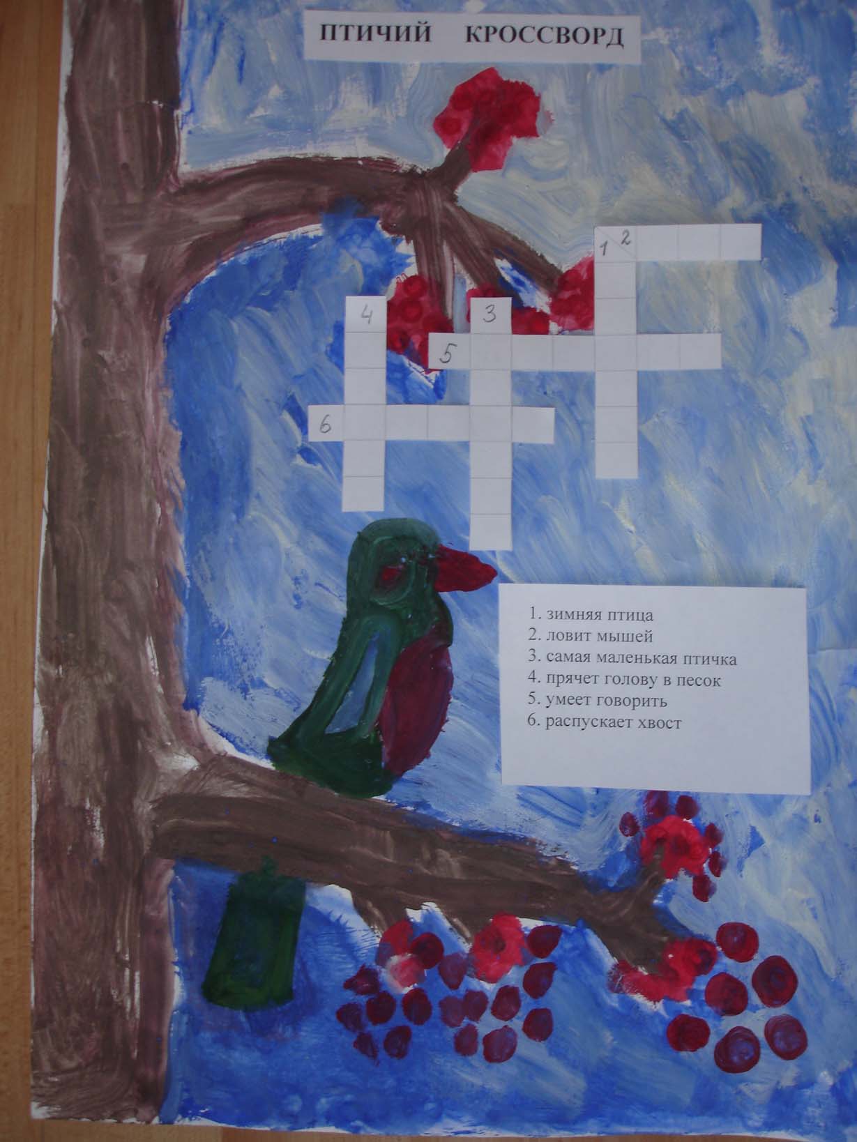 Ответы на кроссворд: 1.снегирь 2. сова 3. колибри 4.страус 5. попугай 6.