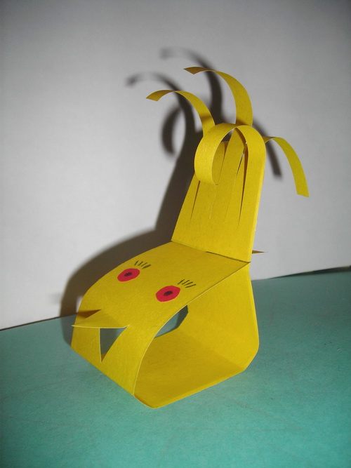 5.Вставить одну прорезь в другую;распушить хвост.Надрезать носик, приклеить глаза.