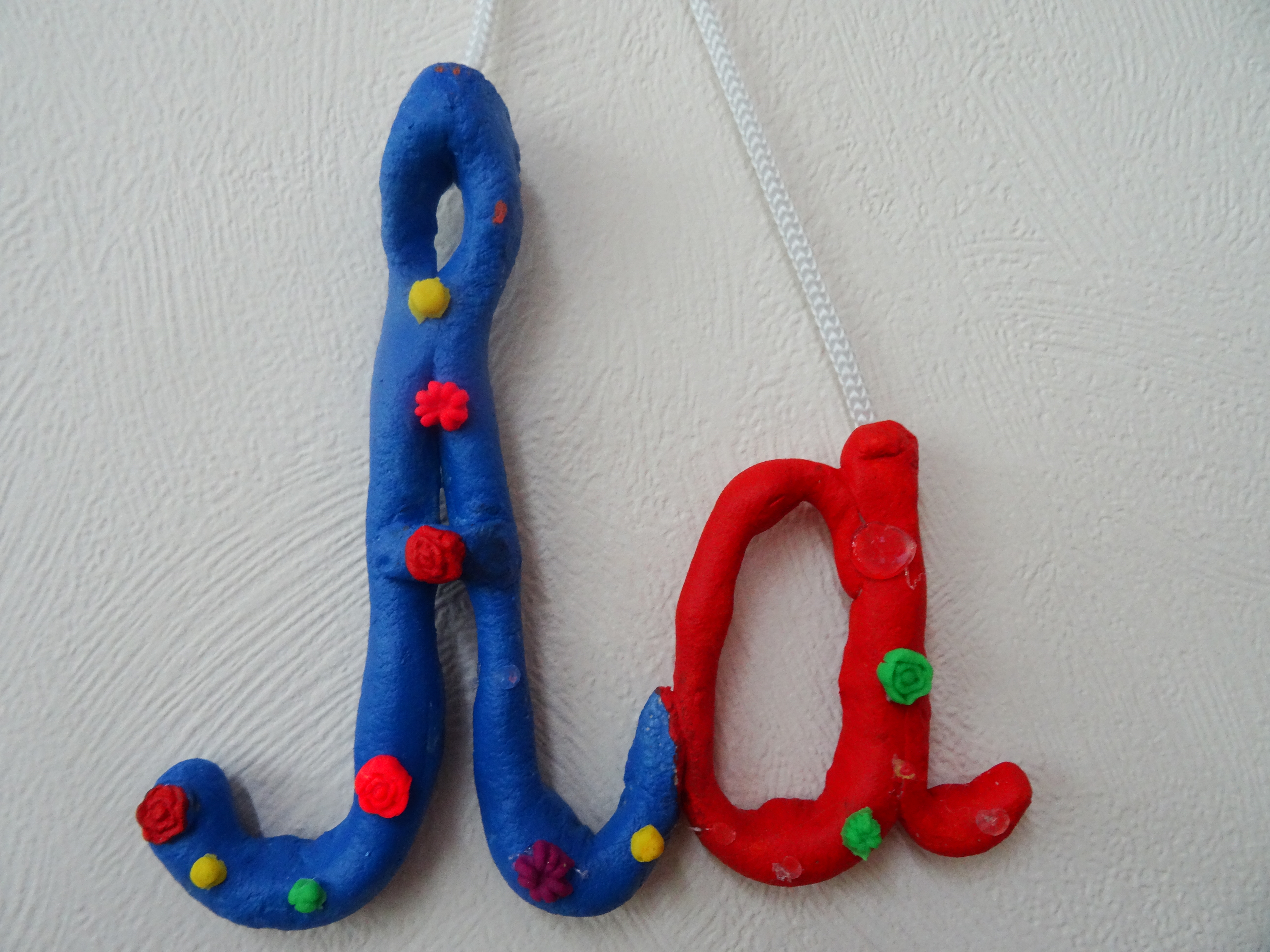 Букву сделала из теста и раскрасила гуашью