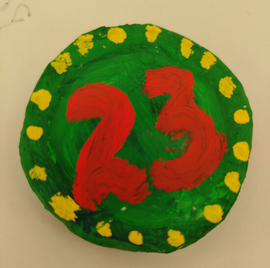 Комментарий: магнит, подарок для папы. работа выполнена из гипса, раскрашена гуашью, приклеена магнитная лента.