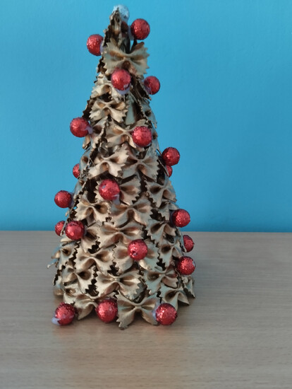 Комментарий: Ёлочка выполнена из макарон и украшена бусинами