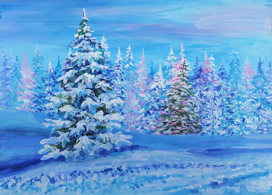 Главная » Фотоальбом » Ёлочка-красавица » Рисунки » Зимний еловый лес