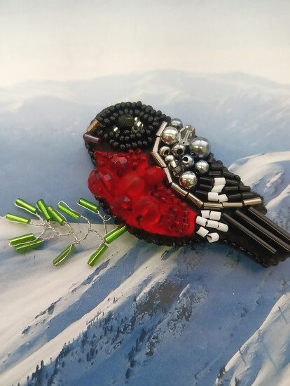 Название: Брошь "Снегирёк-огонёк"