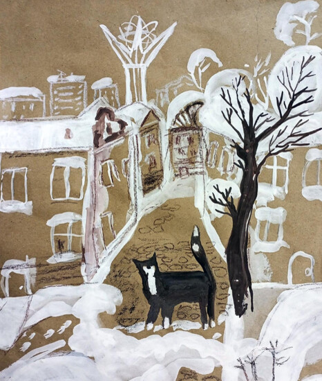 Комментарий: Графика, работа выполнена гуашью на цветной бумаге, масляная пастель.