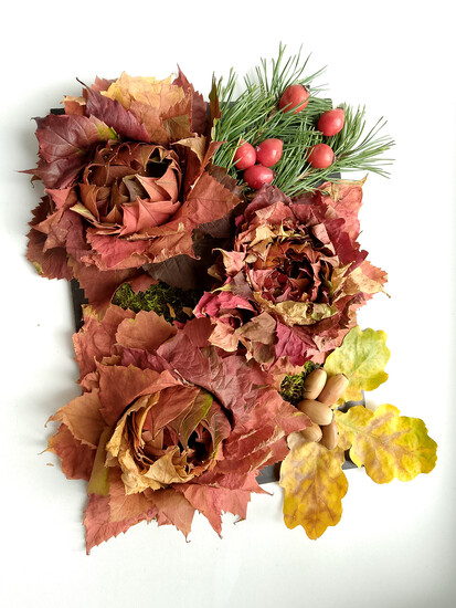 Комментарий: Осенние цветы( из листьев), на лужайке из прекрасного лесного мха