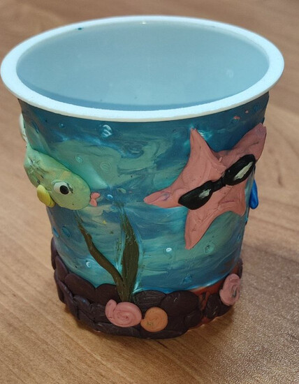 Главная » Фотоальбом » Подводный калейдоскоп » Поделки » Карандашница: подводный мир