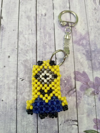 Комментарий: Брелок в виде миньона из бисера — это современный и яркий аксессуар. Миньоны — это СИМВОЛ радости, юмора и беззаботности. Такой брелок поднимает настроение и ассоциируется с детством, игрой и хорошим настроением. Плетение миньона из бисера — проявление творческого подхода и индивидуальности. Это современный вариант традиционных брелоков.