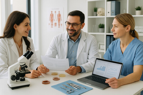 Эффективное лечение онихомикоза строится на междисциплинарном взаимодействии специалистов, где каждый выполняет четко определенную роль в общей терапевтической стратегии. Дерматолог выступает координатором процесса, устанавливает диагноз, назначает медикаментозную терапию и контролирует динамику, подолог обеспечивает механическую санацию пораженных ногтей, а миколог привлекается при сложных резистентных случаях для углубленной диагностики и коррекции схемы лечения.